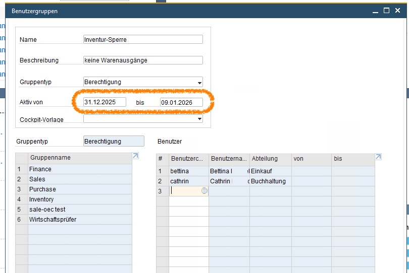 Hier kommt der entscheidende Vorteil: Berechtigungsgruppen in SAP Business One haben ein Gültigkeitsdatum!